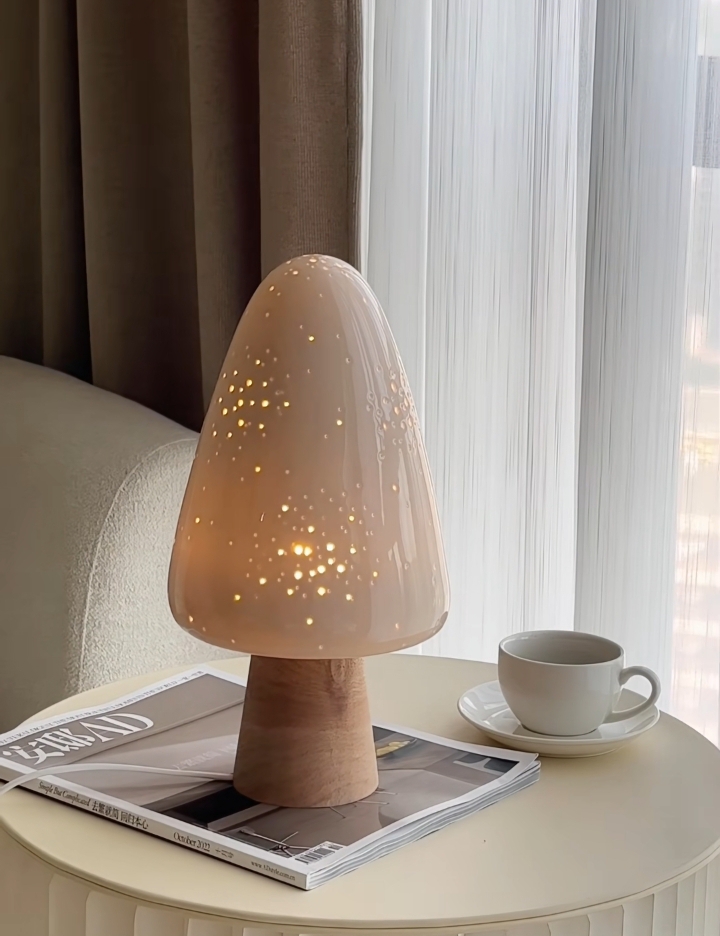 - This mushroom night light , A nature infusion of retro and craftshipment. The lamp shade is handcrafted with care using high Temperature ceramic , which create a Beautiful handicraftment ,add a touch of retro to your space . and its stem which made of wood , gives it a nature feeling.
